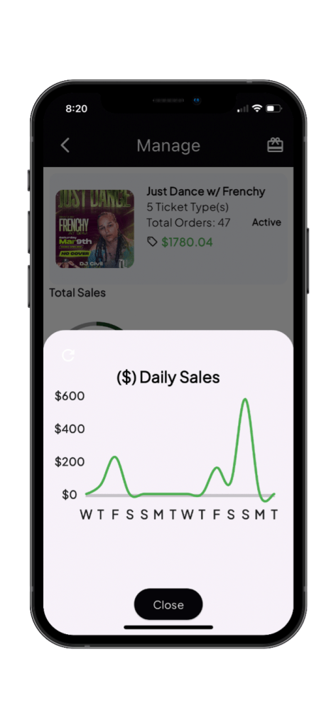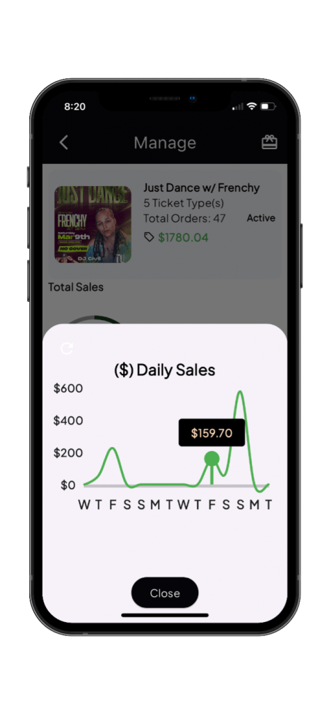 At Streets, we understand that having access to real-time data is crucial for making informed decisions. That’s why we’ve released a powerful new feature that allows Curators and Vendors to see their daily sales for an event or product for the past two weeks. With this update, you no longer have to sift through a list of orders. Instead, you can now enjoy a comprehensive overview of how your sales are performing in real time.