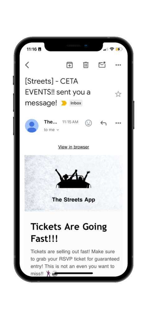 Before this update, the messaging system on Streets was pretty limited. Event curators and vendors could only send in-app messages to users who favorited or saved their events/products or notifications to event attendees. This made it tough to stay in touch with a broader audience, especially past event attendees.