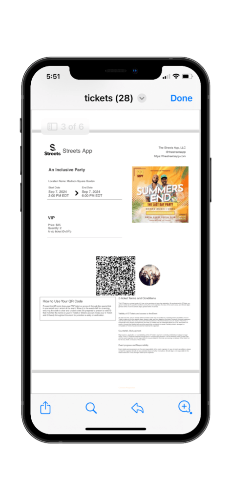 Your Streets experience continues even after you’ve purchased a ticket. PDF Tickets now contain more detailed information about your purchase and are branded with the new Streets design. These tickets not only look great but also provide you with everything you need to enjoy your event.