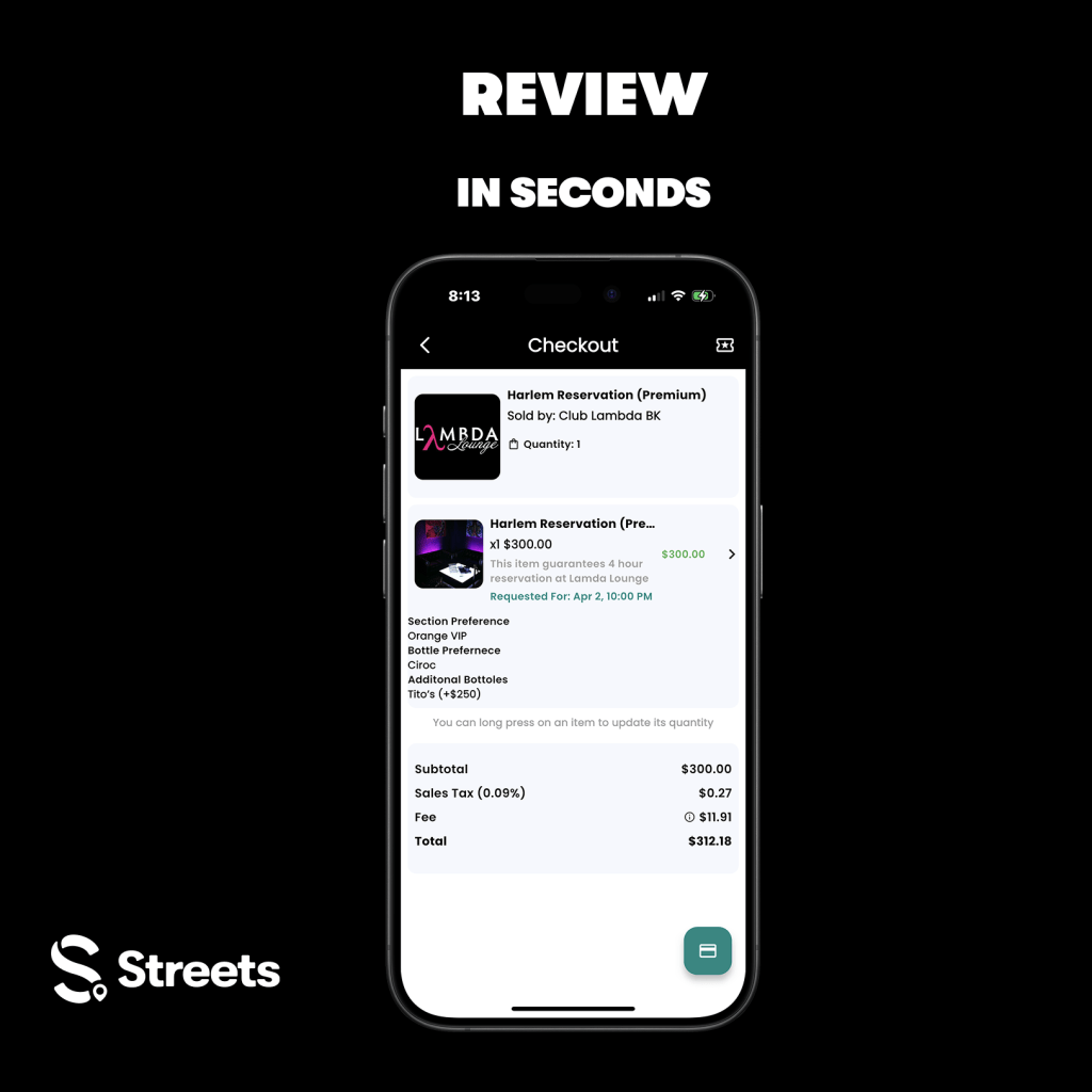 At Streets, we designed Reserve With Streets from the ground up with event promoters and venues in mind, because we know your needs go far beyond basic ticket sales. Whether you’re managing VIP sections, bottle‑service tables, or product add‑ons, this feature gives you a seamless, all‑in‑one solution. Built with cost savings at its core, Reserve With Streets eliminates expensive third‑party fees and long‑term contracts, making your event production cheaper at every level. Now you can keep those dollars where they belong; invested in the experiences that make your event unforgettable.