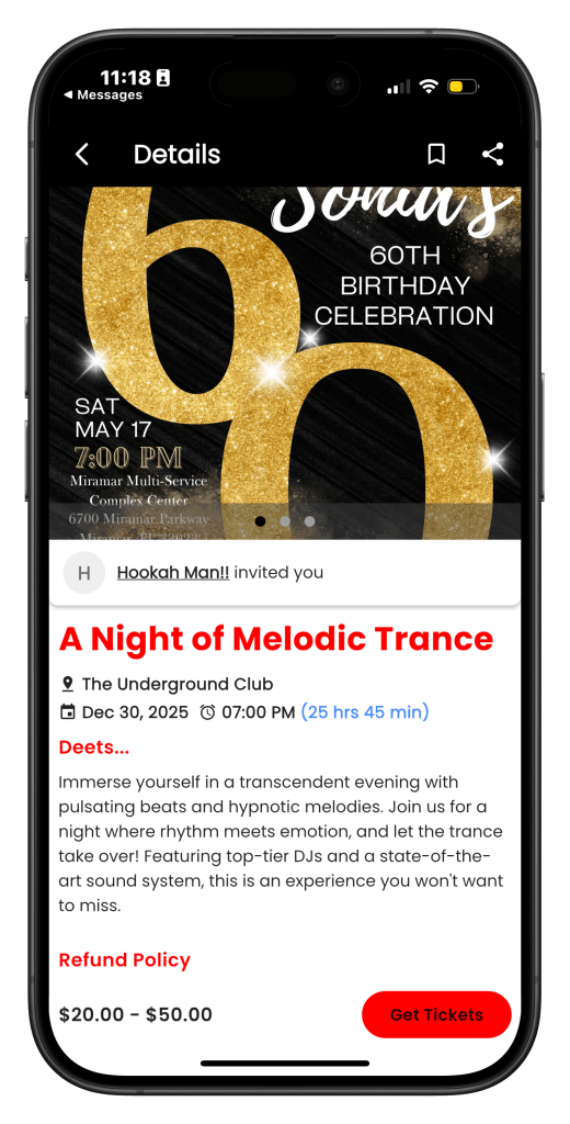 Now, when a guest taps an affiliate link, they’ll immediately see a banner on the event or product page that shows exactly who invited them (e.g., “John D. invited you”). That confirmation gives everyone peace of mind! From the person promoting, to the person buying, to the curator tracking sales.