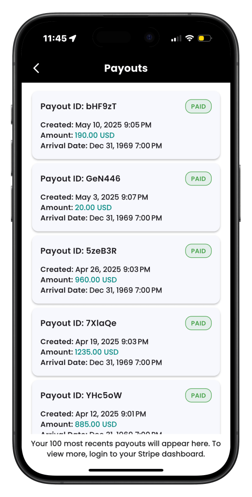 Payouts are handled directly via Stripe, ensuring fast, secure delivery of your earnings.